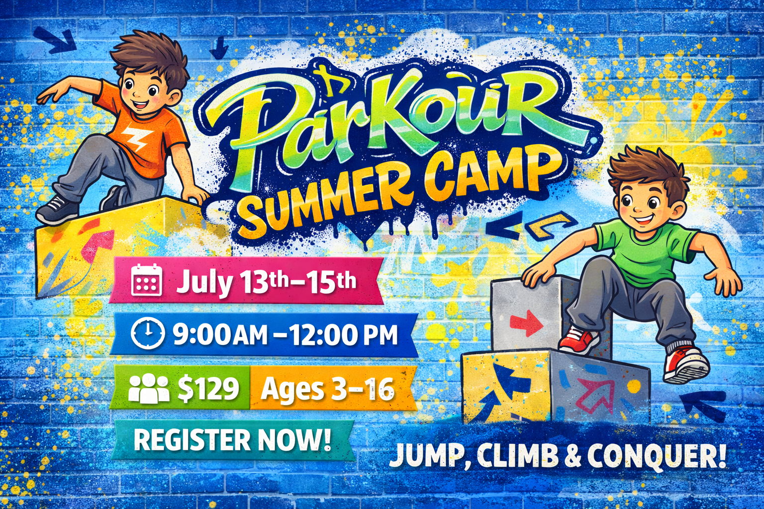 Whether your child is brand new to parkour or already loves jumping and climbing, this camp is the perfect way to stay active, build strength, and have an awesome time this summer.